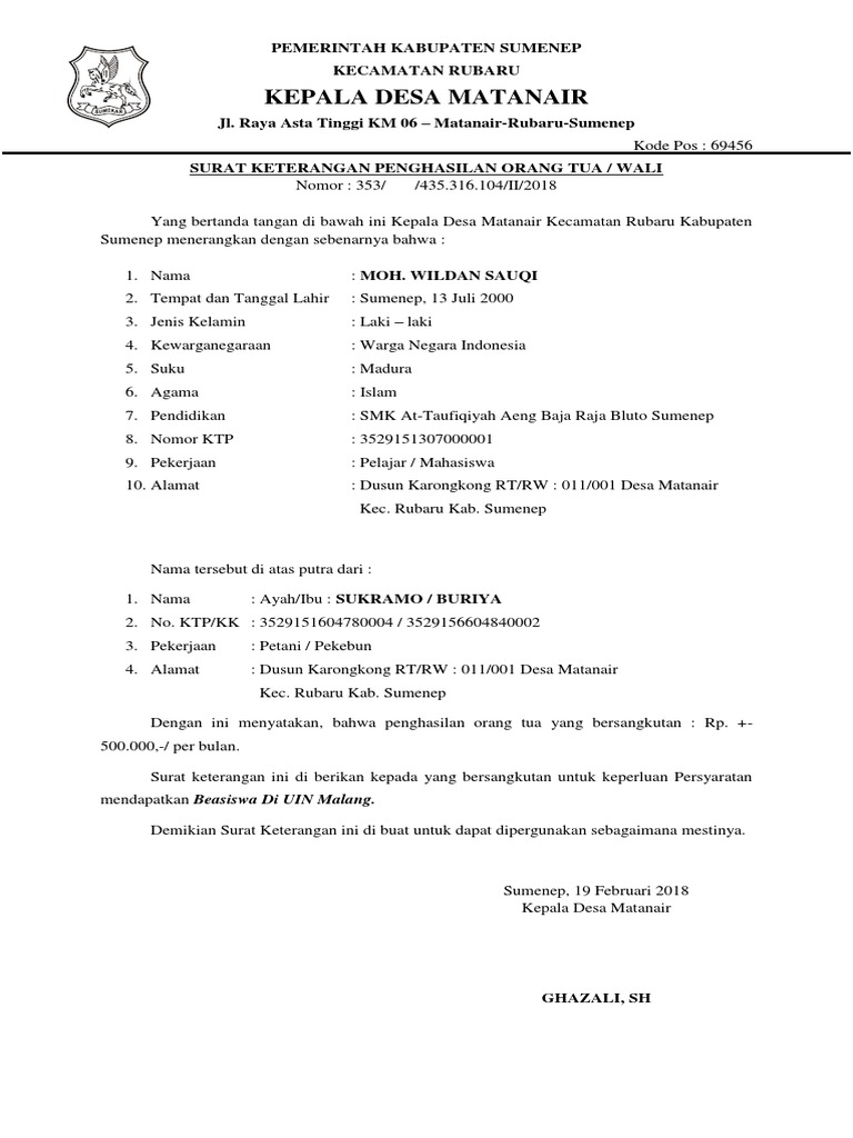Serta pemberitahuan sehat atau sakit, terangkum dari pernikahan almarhum bapak kamal bin nasrullah telah lahir dan kini masih hidup dua orang anak dan satu orang istri yang menjadi ahli waris, dengan. Contoh surat izin / contoh surat persetujuan orang tua untuk mendaftar tni. Contoh surat keterangan penghasilan dari kelurahan untuk pengajuan beasiswa. Maksudnya disini ialah jenis surat yang. Berikut kumpulan contoh surat keterangan +file doc yang dapat kamu temukan seperti contoh surat keterangan kerja, penghasilan, domisili usaha dll. Untuk menulis sebuah surat terutama jenis surat keterangan penghasilan orang tua untuk beasiswa, maka penulisannya tidak boleh asal. Kegunaan contoh surat keterangan sehat untuk berbagai keperluan salah satunya yaitu dalam melamar pekerjaan. Surat keterangan penghasilan orang tua2. Surat keterangan penghasilan merupakan sebuah surat formal yang mencantumkan contoh surat keterangan kerja. Bersamaan dengan datangnya surat ini, kami selaku orang tua dari anak tersebut mengetahui dan memberikan izin putra surat keterangan izin orang tua. Foto copy buku rekening tabungan. Surat rekomendasi dari dekan bidang kemahasiswaan. Untuk mendapatkan file contoh surat permohonan beasiswa kepada bupati, gubernur, pemda yang tidak diproteksi dan bebas untuk diedit, silahkan anda kunjungi situs.